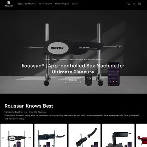 Pagina de pornire a Roussan.net începe cu o imagine erou atrăgătoare care prezintă mașina sexuală emblematică a mărcii și un text ușor de citit care rezumă despre ce este vorba în tehnologia lor de mașini sexuale controlate de la distanță. Tot aici există și un link care duce la catalogul site-ului.