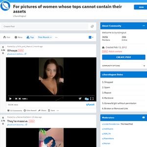 Moram omeniti, da ima ta kraj kar strogo moderacijo in lastnika, ki ne tolerira sranja. Če to podpira razvoj zdravega toka vsebin je čisto drugo vprašanje, ampak, če želite stran, ki nima spama in oglasov, je Bursting Out odličen subreddit za joške, ki jih ni možno nadzorovati.